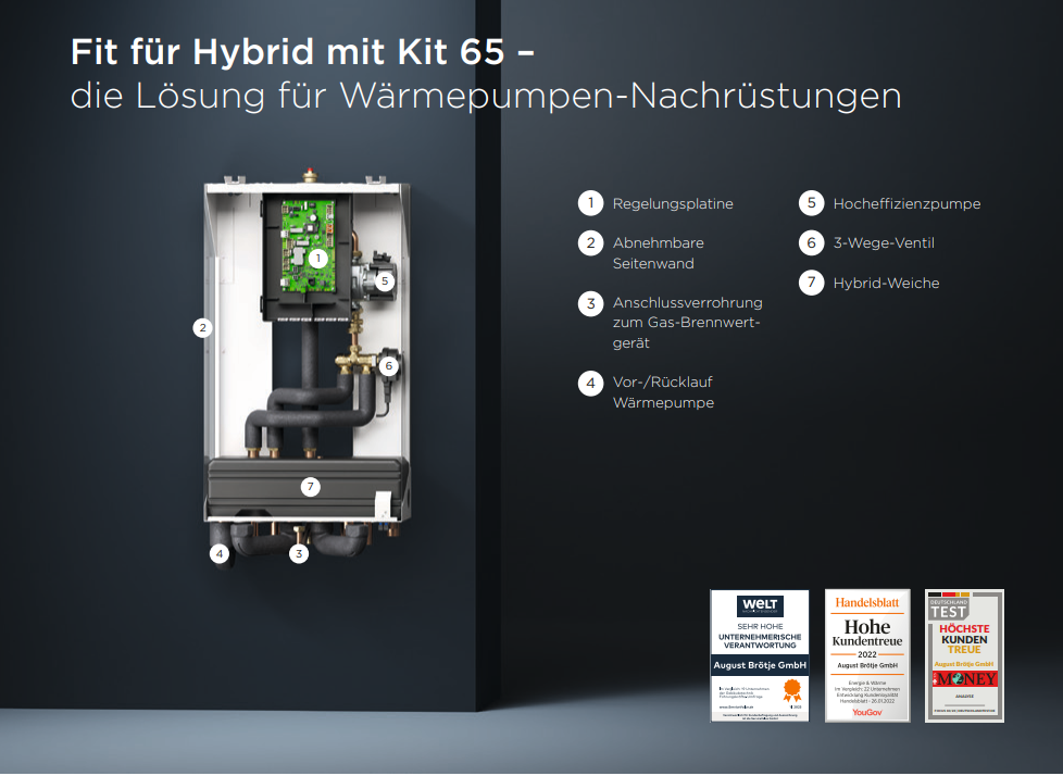 Hybridheizung: Schnittstelle zwischen Gas-Brennwertkessel und Wärmepumpe mit dem Kit 65 | BRÖTJE